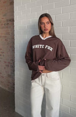 Bring a cool edge to your wardrobe with the Ahead Of Schedule Long Sleeve Oversized Jersey in Chocolate! Features a V‑neckline, slouched shoulders, long sleeves, an oversized silhouette, a centre‑front printed White Fox text, ribbed neckline detailing, and unlined stretch fabric for easy comfort. Style with your go to denim jeans, sunnies and sneakers for a casual but cool weekend fit.