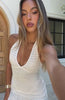 Say hello to your new summer go-to. The All I Wanted Was This Mini Dress White features a halter neck design with back button and loop closure, plunge V neckline, lined, asymmetrical hemline, backless, invisible side zipper and clasp closure, mini length and frill detailing at hem. Style with a mini shoulder bag and flower hair clip for a fire fit'!