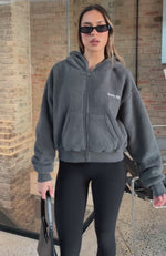 Always First Teddy Borg Boxy Zip Front Hoodie Charcoal
