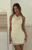 Meet Between The Lines Mini Dress Off White, the summer mini you’ll be reaching for on repeat. It features a halter strap buttoned at the nape, a soft cowl neckline, and an fitted bodice that flows beautifully into a relaxed skirt. Backless with self‑tie straps, is fully lined in high‑stretch fabric, and detailed with delicate floral beading to elevate the look. Style with kitten heels and layered gold jewellery for a look we love.