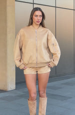 It may be cold, but this set is HOT! The Between Us Faux Suede Shorts in Honey are crafted from the softest faux suede, featuring a flattering thick waistband, secure zipper with hook-and-bar fastening, and functional side pockets. Pair them with the matching Confidence Level Suede Jacket in Honey for a flawlessly coordinated, on‑trend look.