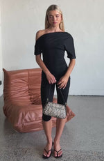 BRB adding to cart! The Brunch Dates Off-Shoulder Jumpsuit in Black is your go-to for effortless elegance. Featuring a one-shoulder neckline and relaxed short sleeves, this piece offers a flattering fitted bodice that transitions seamlessly into capri-length pants. An invisible side zipper ensures a smooth silhouette. Pair with kitten heels, layered gold jewelry, and a shoulder bag for a chic, off-duty look that takes you from brunch to beyond.