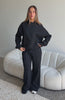 Loungewear weather state of mind. The Come A Long Way Oversized Hoodie Black is designed with a double lined hood, slouched shoulders and firm ribbed hems which round out an oversized silhouette. Featuring long sleeves, a roomy front pocket, and an unlined fleece interior, this hoodie delivers a cozy feel. Finished with White Fox embroidered lettering centre front. Style with the matching Come A Long Way Wide Leg Sweatpants and slippers for a cosy Sunday look.