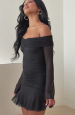Dreaming Of Yesterday Long Sleeve Mini Dress Black