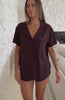 Cosy up in the pyjamas you’ll never want to take off! The Dreamscape Pyjama Set in Chocolate features a high-stretch, soft fabric and is fully lined for a smooth feel. The top has a relaxed lapel neckline, short sleeves, and a button-front closure. The matching shorts are designed with an elasticated waistband that gives you all-night comfort. Pair with your go-to slippers and drift off into dreamy serenity.