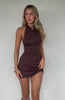 Step into the spotlight with confidence wearing the Eternal Glow Mini Dress in Chocolate! Features a high cut cowl neckline, mini length, backless and stretch material for an easy slip on design. Turn heads by pairing with a clear heels and layered jewellery!