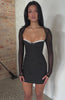 Date‑night perfection! the Get Into It Long Sleeve Mini in black features a sweetheart neckline with underwire bust cups trimmed in playful polka‑dots, sheer long sleeves, and structured boning down the bodice flowing into faux‑boning panels at the front. The fitted silhouette is fully lined, with an adjustable tie at the back and an invisible zipper plus hook‑and‑eye for a seamless finish. Complete the look with kitten heels and layered gold jewellery for the perfect sweet but sexy look.
