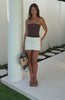 Ocean breeze and the Got The Blues Crochet Sequin Mini Skirt in White. Featuring a fixed waistband and intricate crochet fabrication with shimmering sequin detailing, it’s fully lined and finished with a side zipper and hook-and-eye closure for a smooth, stylish fit. Pair with a tube top for a summery look we love!