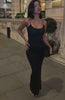 Serving fierce looks in the Late Night Love Maxi Dress in Black! This stunning piece features thin adjustable shoulder straps, a scoop neckline, and draped fabric across a ruched waist with both front and back detailing. The dress sparkles with shimmering diamanté embellishments and is fully lined for comfort, while the backless design adds a bold finish. Style it with heels and a statement bag for the ultimate night-out look.