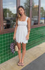 Craving summer lovin’ in the Let It Flow Mini Dress in White. This breezy staple features wide shoulder straps, a square neckline with a delicate ruffle hem, and subtle sheer lace under the bust for light structure. The relaxed silhouette in eyelet fabric is fully lined for comfort, finished with a side zipper and hook-and-eye closure for a flattering fit. Style with simple sandals and layered gold jewellery for a girly look.