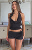 THE fit everyone will be talking about...introducing the Let's Ride Mini Shorts Black. Featuring a thin elasticated waistband with a fold over design and side ruched detailing, side flower embellishments, lined material, booty short length and stretch material for an easy slip on design. Complete the look with the Rave Crave Halter Top and kitten heels for a statement fit.