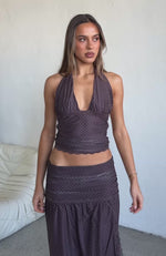 Mad At You Halter Top Choc/Pink Polka Dot
