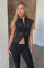 Flirty, fitted and fabulous! The On My Own Wave Top in Black is designed with a turtleneck and short sleeves, it offers a fitted silhouette that enhances its elegant appeal. The sheer, unlined fabrication adds a delicate touch, while the hook-and-eye closure down the center front provides a subtle yet alluring detail. Style with the matching On My Own Wave Pants Black for a look we love.