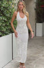 Happier in the Only You Knit Maxi Dress in Off White! Designed with thin self‑tie halter straps, a scoop neckline, relaxed knit silhouette with a floral design, mesh lining and a slip‑on style. Pair with simple heels and layered gold jewellery to let the dress have it's moment.