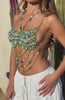 All eyes on you this festival season in the Own The Night Beaded Top in Green. Features halter straps and clasp closure, sheer beading at bust, layered beadwork down the bodice, unlined, and an open back with chain‑back straps and clasp closure for bold, dance‑floor energy. Style with a bikini top underneath and the Keep It Loud Maxi Skirt.