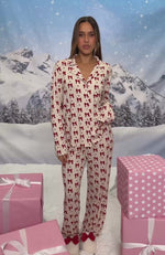 Snuggle into the season’s most irresistible loungewear: the Pillow Talk Long Sleeve Pyjama Set in Bow Bliss. This set features buttery-soft, high‑stretch fabric, a lapel neckline and front pocket with embroidered White Fox . With long sleeves, a front button closure, and a comfy elasticated waistband and lined, it’s both effortlessly practical and beautifully tailored. Pair it with your go-to Uggs for an effortlessly chic look as you curl up and drift off in style.