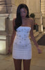Out n about in the Savage Lust Strapless Mini Dress White. Structured with internal boning, this strapless dress features grip tape at the neckline, shimmering beaded and rhinestone floral applique centre front, and a corset-inspired lace-up back. Silky fabrication and full lining ensure comfort, while an invisible side zipper plus hook-and-eye closure finishes the look. Style it simply with heels and minimal jewellery and let the dress take centre stage.