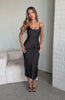 Timeless and elegant is our She's For Keeps Maxi Dress in Black! Features adjustable spaghetti straps, scoop neckline with feminine lace trim detailing, invisible zipper with hook and eye closure on side and lined. Effortlessly slip on kitten heels and dainty gold jewellery for a chic old money look!