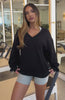 Pretty and productive in the Shutting It Down V Neck Oversized Sweater in Black. Designed with a ribbed V-neckline, ribbed cuffs, a relaxed hem band, and long sleeves for an effortlessly oversized fit. Finished with White Fox Active patch side front and loop back interior for a cosy feel. Style with a active playsuit and your fave sneakers for a cosy sporty look.