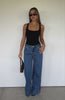 Make it a night to remember in the Summer Mid Rise Wide Leg Jeans Admiral Blue. Features a mid rise fit, wide leg design, front zipper and button closure, 5 pocket design, raw hem with side split detailing and full length. Style with your favourite basic crop and a statement belt!