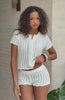 Spring has officially sprung. The Sunset Solos Knit Booty Shorts Off White feature a cheeky micro‑mini silhouette with a scalloped edge at the leg openings and a comfy elastic waistband for a perfect fit. Pair them with the matching Sunset Solos Knit Top Off White and wedges for a chic, coordinated spring look.