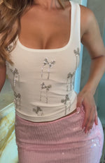 Add a dash of dazzle with the Sweet Angel Rib Tank in White! Featuring thick shoulder straps, a square neckline, and a beaded bow accent resting on ribbed, high‑stretch fabric. Pair with a mini skirt and clear heels for an effortlessly chic look.