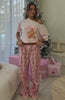 Add a dash of festive cheer to your bedtime routine with the Sweetheart Pyjama Pants in Gingerbread Twist. Designed with a thick elasticated waistband featuring a self-tie drawstring, these full-length, straight-leg pants offer a comfortable fit. Crafted from unlined, lightweight material, they are finished off with a Christmas inspired design. Pair them with the Sweetheart Pyjama Off Shoulder Tee Soft Pink.