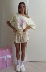 The Sweetheart Pyjama Short in Festive Flicker adds a festive touch to your bedtime routine. Designed with a thick elasticated waistband, self-tie drawstring and Christmas inspired pattern. The straight-leg cut and unlined, lightweight material provide breathability and ease. Pair it with the Sweetheart Pyjama Off Shoulder Tee Lemon.