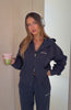 Lounge lovers are obsessed with the Test Drive Boxy Zip Front Hoodie in Navy! Designed with a relaxed hood, slouched shoulders, ribbed cuffs, and ribbed waist panel for a cinched look. This boxy fit hoodie features long sleeves, front zipper double ended closure, and an unlined fleece interior, this hoodie delivers a cozy feel. Finished with puff print metallic White Fox text side front. Style with the matching Test Drive Lounge Shorts for a cozy yer cool fit.