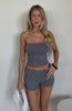 The set of our dreams. The Trying To Forget Strapless Top Mocha Stripe features a strapless design with elasticated hem for support, cropped length and stretch material for an easy slip on design. For a must have look pair with the matching Trying To Forget Shorts in Mocha Stripe and sandals.