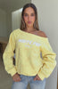 Unwind in style with our prettiest loungewear yet. The Vol. 1 Off Shoulder Printed Sweater in Lemon Bow is designed with an off-the-shoulder neckline and ribbed hems, which round out an oversized silhouette. Featuring long sleeves and an unlined fleece interior, this hoodie delivers a cosy feel. White Fox puff print text embellishes the centre front. Style with your go-to denim jeans and colour sneakers for the cutest fit!
