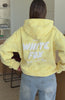 Unwind in style with our prettiest loungewear yet. The Vol. 1 Oversized Printed Hoodie Lemon Bow is designed with a relaxed hood, slouched shoulders and ribbed hems, which round out an oversized silhouette. Featuring long sleeves, a roomy front pocket, unlined fleece interior, this hoodie delivers a cosy feel. White Fox puff‑print text embellishes the centre front and back, paired with a printed "made with love" text and bow design. Style with your go-to denim jeans and sneakers for a cute, cosy weekend fit.